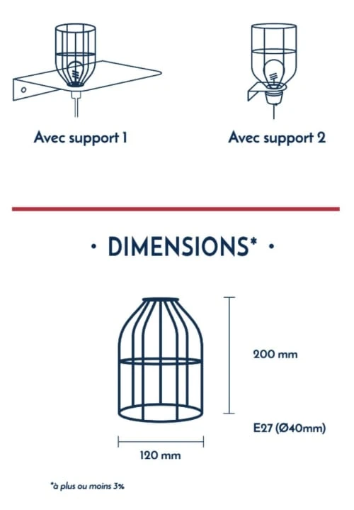 COMPATIBLE AVEC LES PRODUITS HOOPZI : Bala, Hang 1, Hang 3 et Hang 5 disposant de douilles bakélites avec bagues de fixation, COMPATIBLE AVEC LES DOUILLES E27 : Toutes les douilles E27 disposant de bagues de fixations, QUALITÉ : Cage robuste en acier laqué