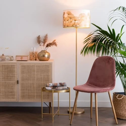 Maisons Du Monde Lampes à Poser Lampe En Céramique Beige Et Fer Doré, Abat-jour En Coton Blanc