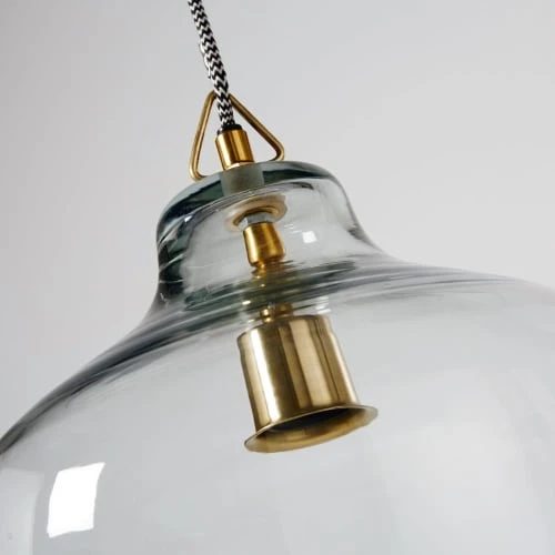 Envie d’éclairer votre pièce de vie sous un nouveau jour ? Optez pour la suspension en métal doré et verre D32 MARY. Monté sur une douille en métal doré, l’abat-jour en verre éclairera parfaitement l’espace. Le petit plus de cette suspension ? On l’imagine aussi bien décorer une pièce au style vintage qu’à l’esprit maison de campagne. Notre conseil : choisissez une ampoule esthétique. Elle saura mettre en valeur l’abat-jour transparent.